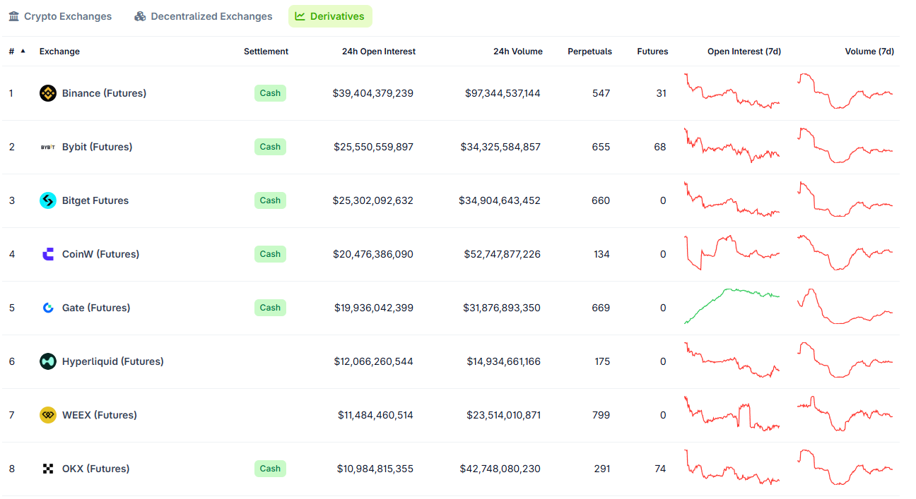 Hyperliquid has grown to become the sixth-largest derivatives exchange in the world, with over $12 billion of 24-hour open interest, up from 12th place since the beginning of April, CoinGecko data shows.