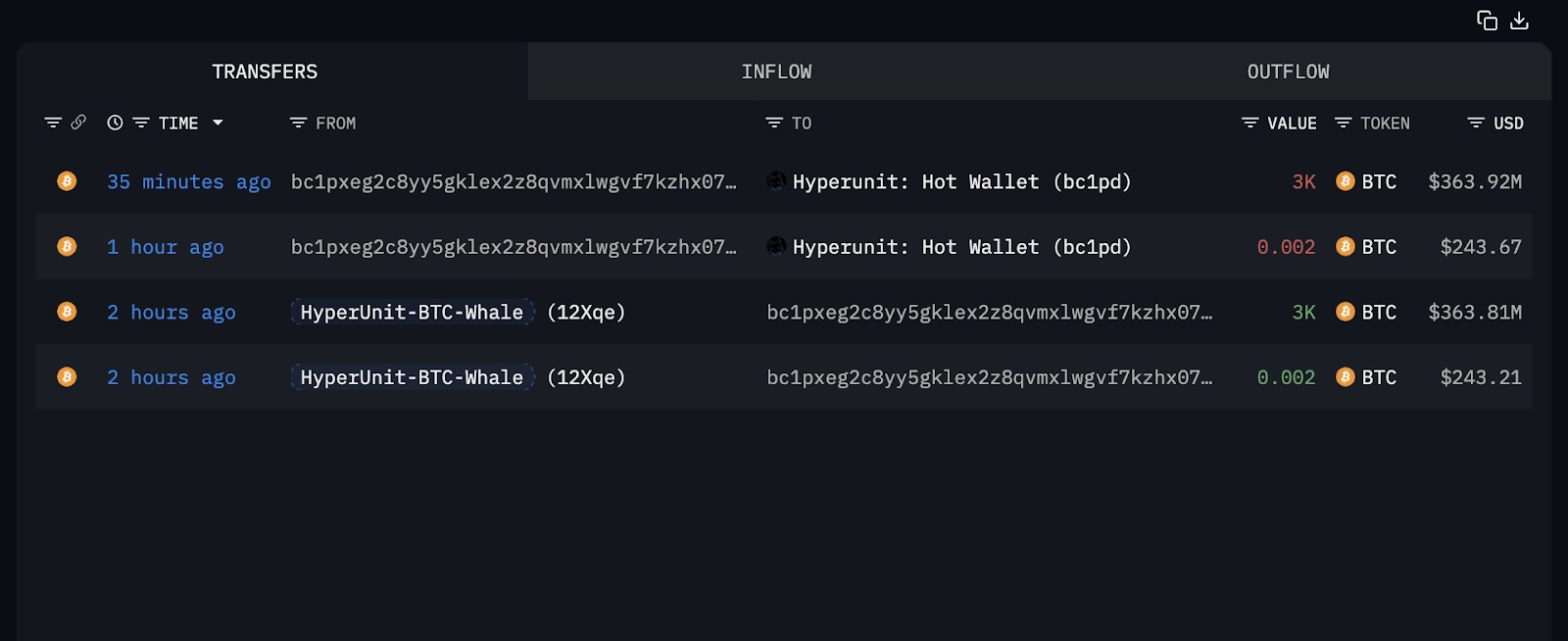 The whale address transferred $360 million worth of Bitcoin (BTC) into decentralized finance (DeFi) protocol Hyperunit’s hot wallet “bc1pd” on Tuesday. This marked their first transfer in two months, according to blockchain data platform Arkham..