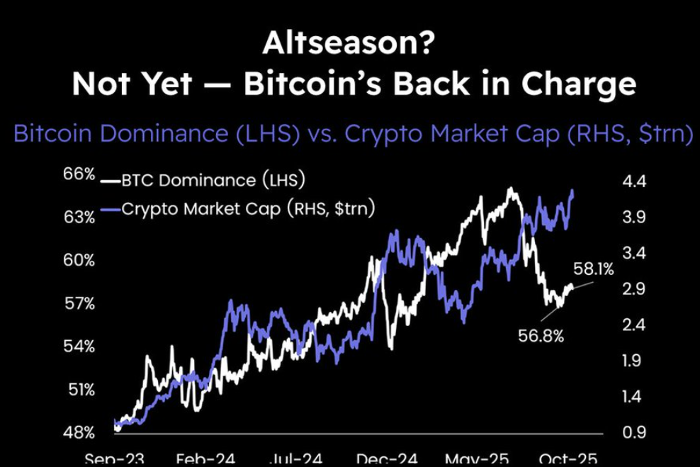 “Over the past two months, Bitcoin dominance temporarily declined as ETH and select alts outperformed, but that trend is now reversing – signaling that Bitcoin is once again reclaiming leadership in this cycle,” the company wrote Wednesday on X.