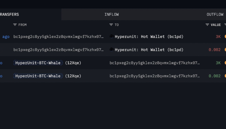 The whale address transferred $360 million worth of Bitcoin (BTC) into decentralized finance (DeFi) protocol Hyperunit’s hot wallet ‘“bc1pd” on Tuesday. This marks their first transfer in two months, according to blockchain data platform Arkham..