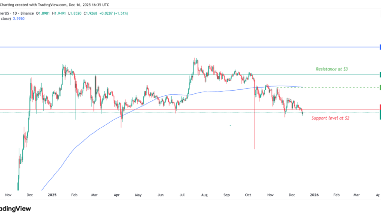 XRP (XRP) is facing renewed downside pressure as derivatives activity and onchain positioning continue to weaken across December. These signals point to a market still in risk-off mode, even as price hovers near a key technical support around $2.00.