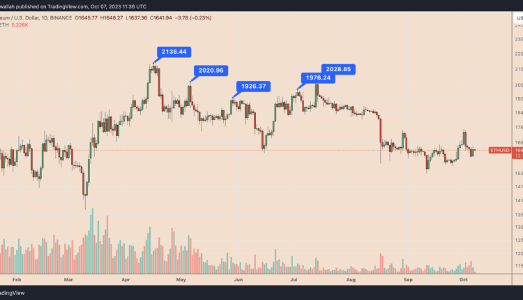 The price of Ethereum’s native token, Ether (ETH), has gained around 35% so far in 2023. But its attempts to break above $2,000, a psychological resistance level, have witnessed strong bearish rejections multiple times.