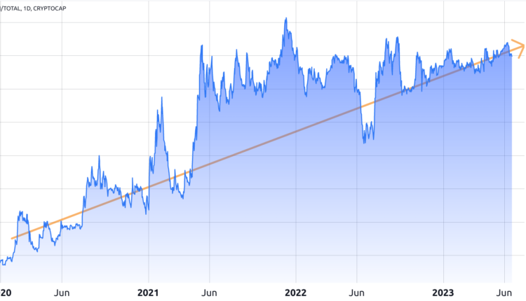 As shown above, Ether’s dominance in market capitalization terms grew over the past couple of years, from an 18% average in July 2021 to the current 20%. Excluding Bitcoin (BTC) from the analysis, Ether’s market share presently stands at 40.6%, while the next competitor, BNB, holds a 7.2% share.