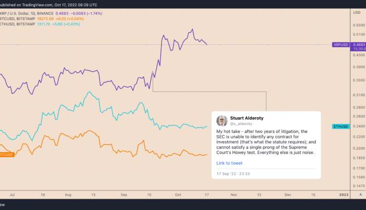 “The news that the court has rejected SEC’s objection to disclosing more documents linked to Hinman’s 2018 speech led to a surge in XRP price on September 30; XRP rallied by 12% in twenty-four hours […] These post-hearing rallies might just be a taste of what is to come if XRP wins the case.”