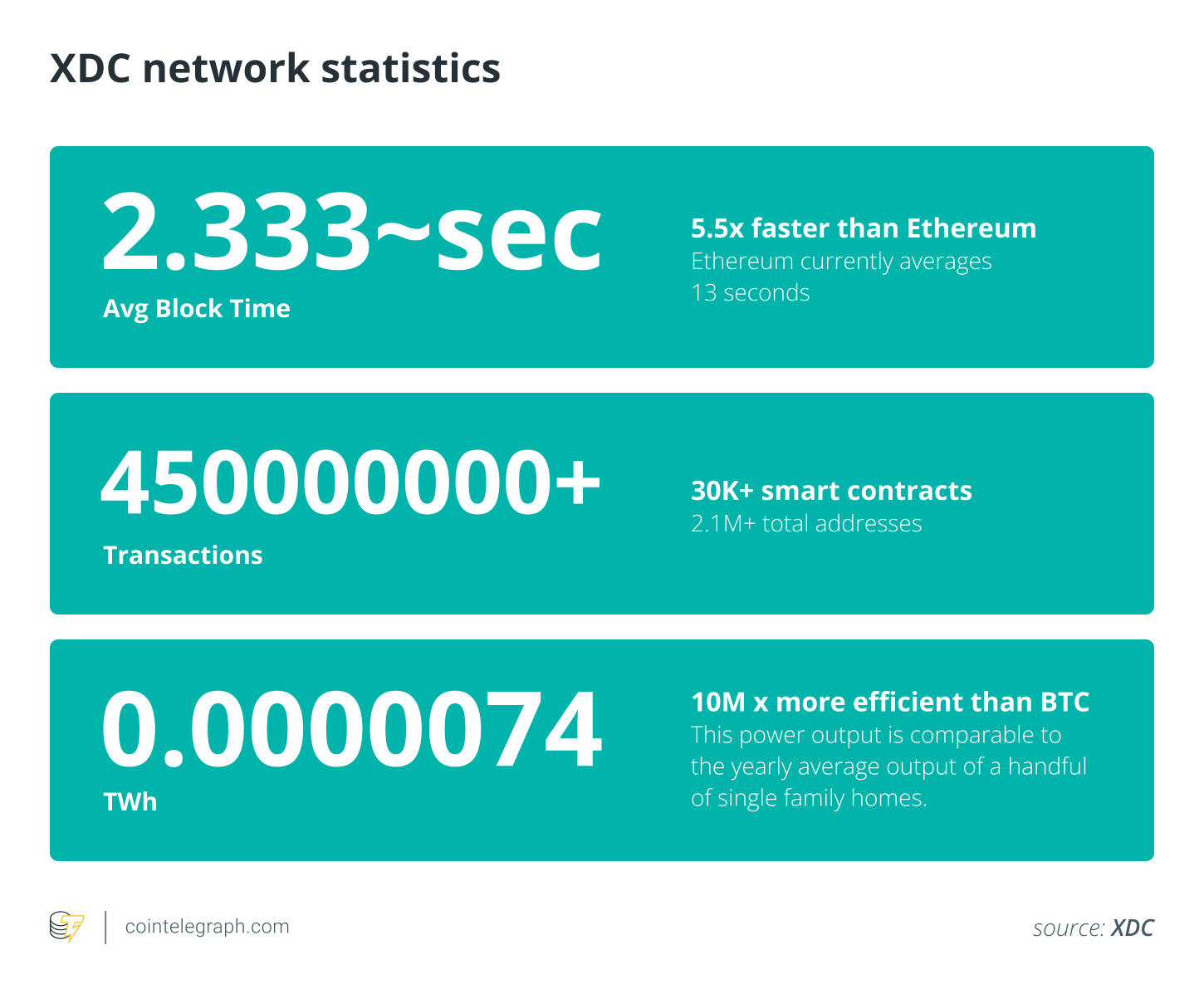 XDC is already used in pilots across Asia, Latin America and Africa. It supports over 2,000 transactions per second with near-zero fees. In addition, the network is interoperable with over 125 blockchains via the LayerZero protocol.