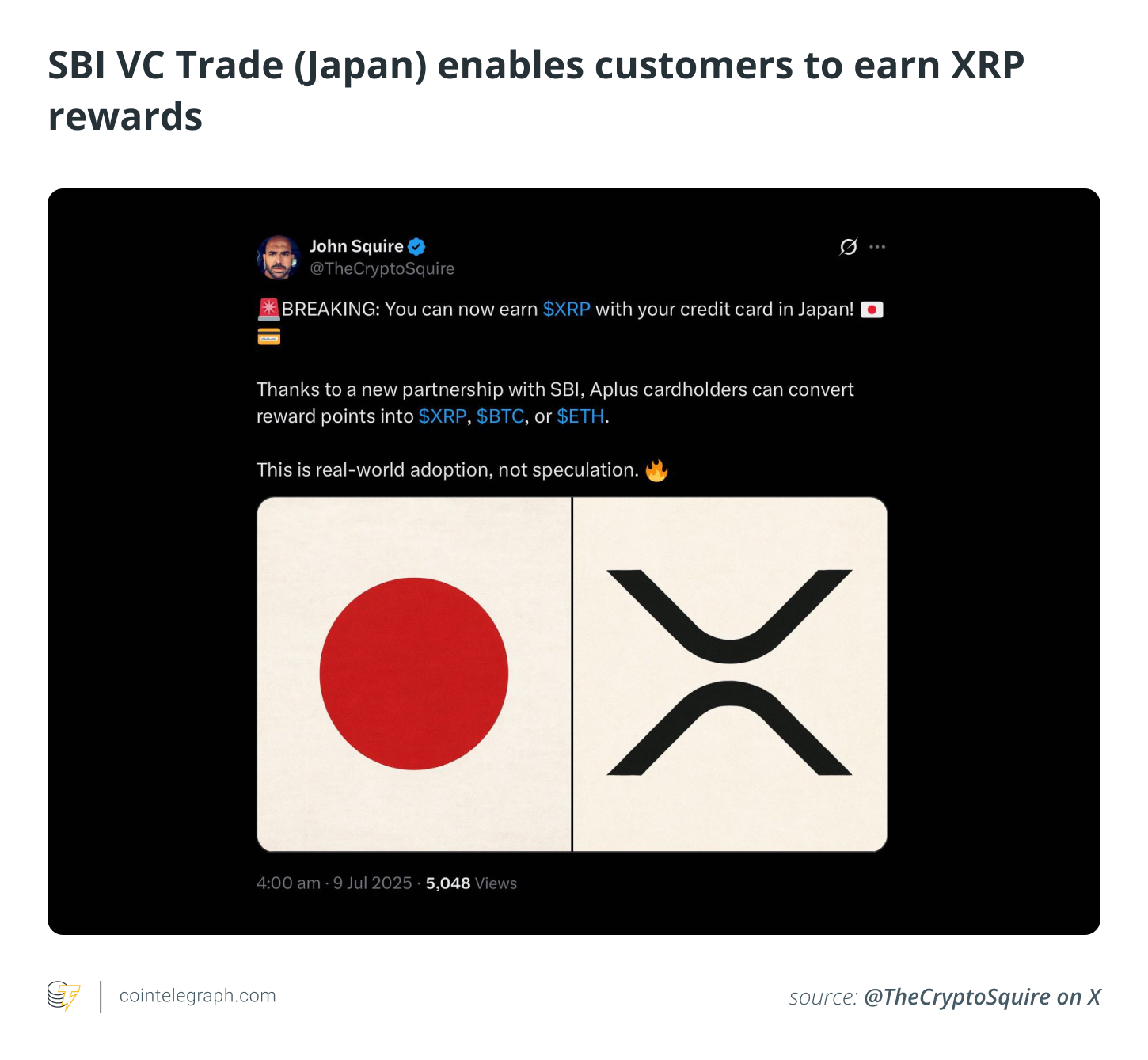 SBI VC Trade (Japan) enables customers to earn XRP rewards through loyalty campaigns, expanding its use beyond trading.
