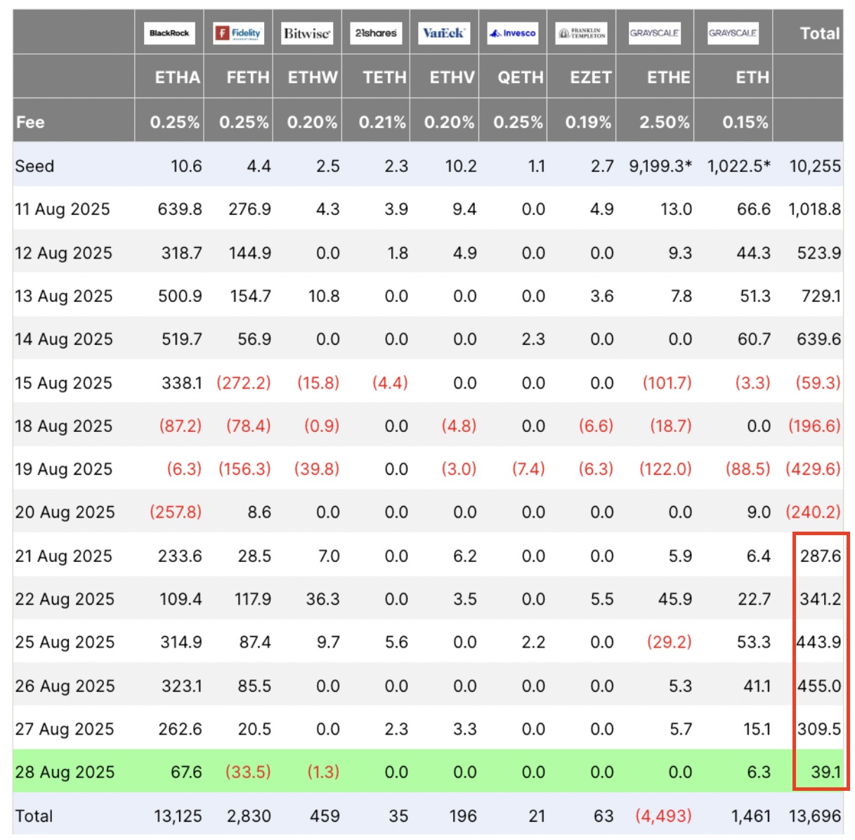 Institutional interest in ETH has surged recently, driven by record-breaking ETF inflows and corporate treasury adoption.