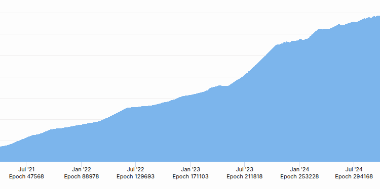 At the time of writing, there was 34,168,987 staked Ether (ETH) worth nearly $89.6 billion. Consequently, half of all ETH has a current value of almost $44.8 billion.