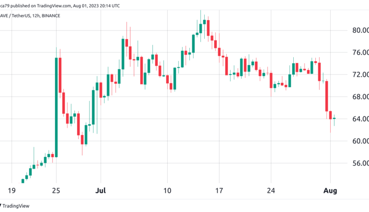 AAVE, the governance token of the decentralized finance (DeFi) protocol Aave, experienced a 17% decline between July 30 and August 1, reaching the $62 level.