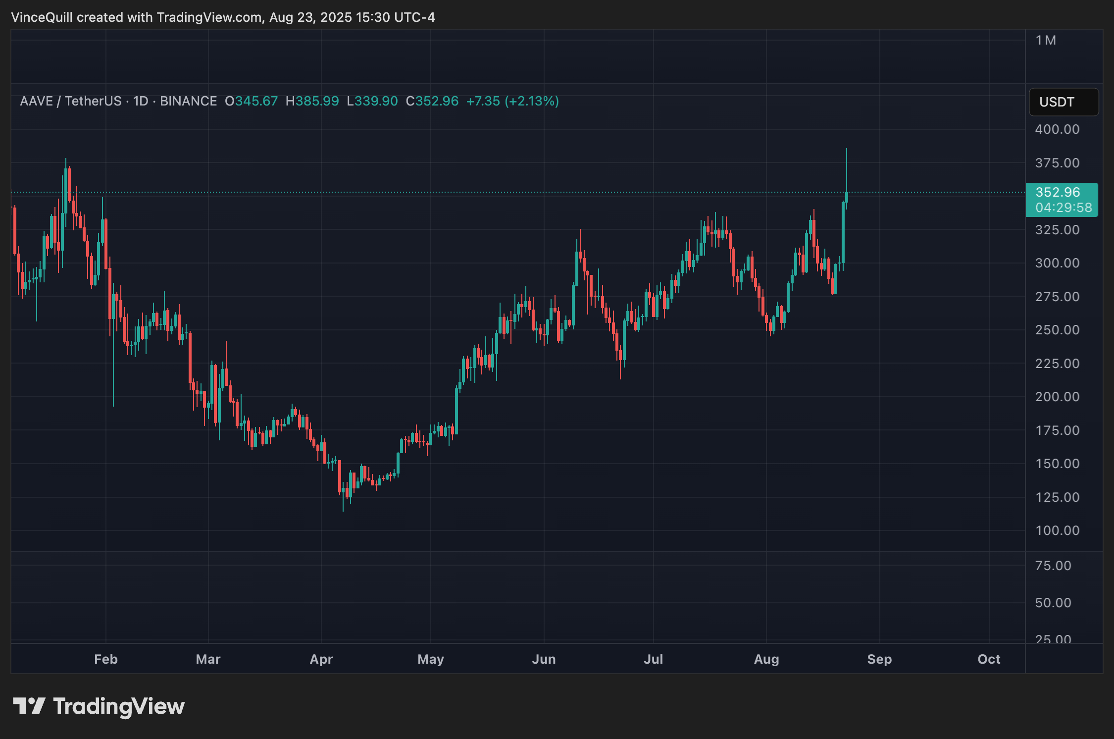 Aave founder Stani Kulechov called the proposal “the art of the deal” on Saturday, and, in a separate post, signaled the terms of the proposal were still valid. Following the rumors, Aave’s token fell from about $385 to a low of $339 before rebounding to about $352.