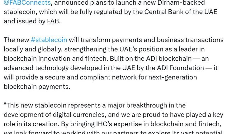 Related: UAE stablecoin issuer gets nod from central bank