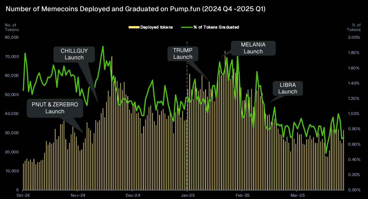 “Daily tokens deployed has fallen by over 56.3% from its peak in January to 31K at the end of 2025 Q1. The percentage of ‘graduated’ tokens also fell drastically to 0.7%, compared to 1.4% in 2025 January.”