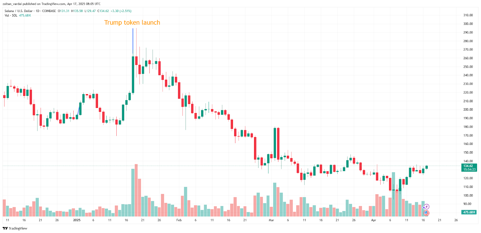 SOL has fallen by around 48% in the past three months since Trump’s inauguration, when it briefly peaked above $270, TradingView data shows.