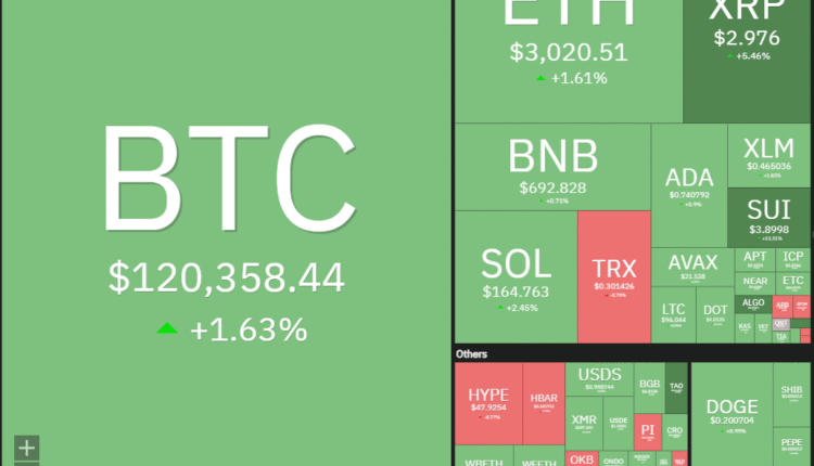 Bitcoin (BTC) started the new week on a strong note, rising above $123,000, but higher levels are witnessing some profit booking. A positive sign is that the bulls are trying to maintain the price above $120,000.