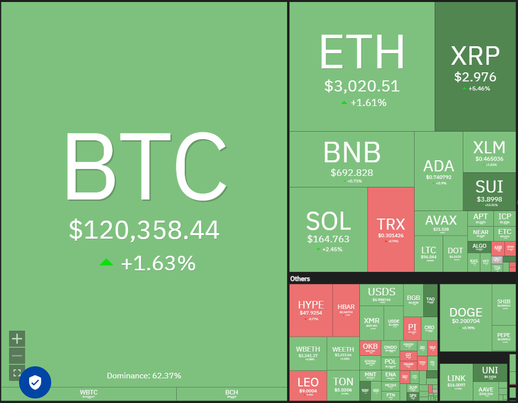 Altcoins Chase New Highs After Bitcoin Hits $123,000