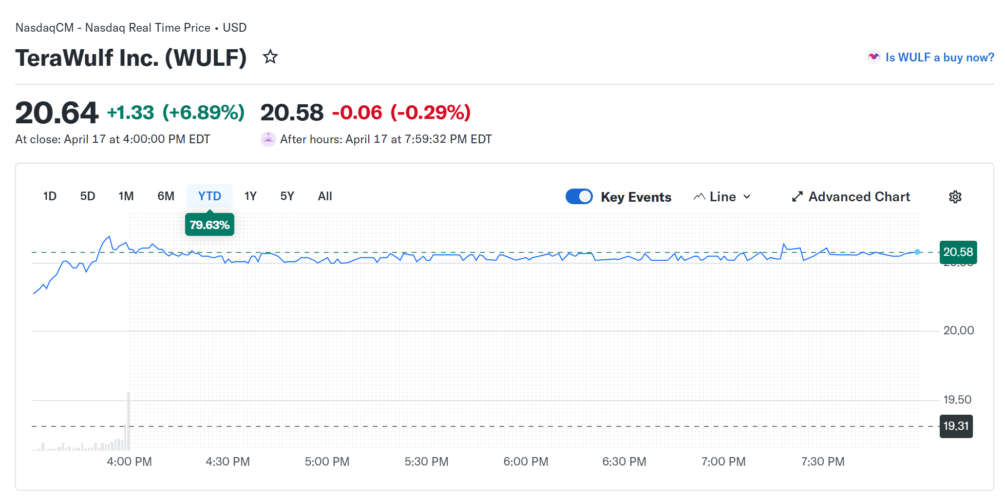 TeraWulf shares are up 80% YTD. Source: Yahoo! Finance