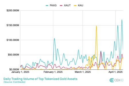Tariff fears led tokenized gold trading volume to surge to a two-year high this week, topping $1 billion for the first time since the US banking crisis in 2023, Cointelegraph reported on April 10.