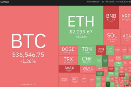 The bears pulled Bitcoin below the 20-day exponential moving average ($35,948) on Nov. 21 but could not sustain the lower levels. Strong buying by the bulls pushed the price back above the 20-day EMA on Nov. 22.