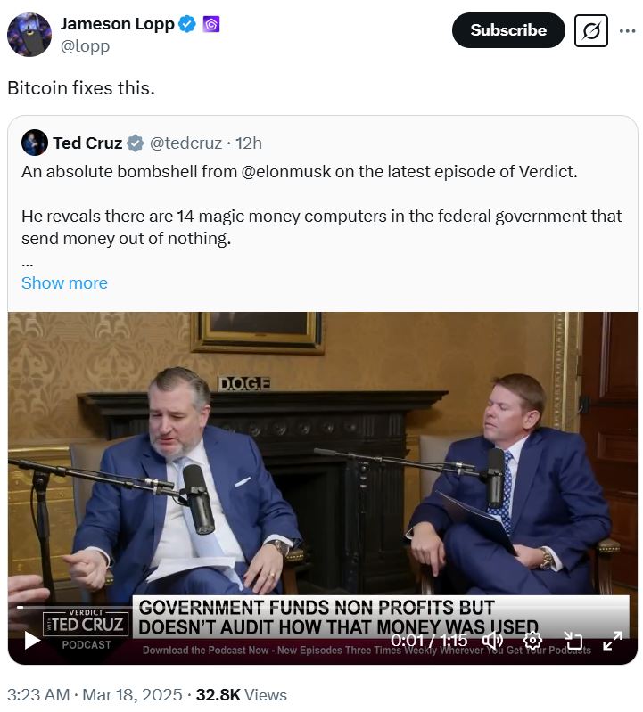 Jameson Lopp, the chief security officer at Bitcoin (BTC) custody company Casa, said in the video comments that “Bitcoin fixes this.”