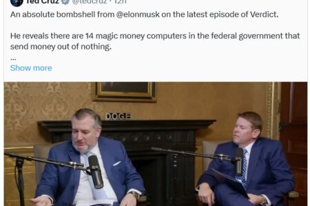 “You may think that the government computers all talk to each other, they’re synchronized, they add up what funds are going where, and it’s coherent and that the numbers you’re presented as a senator are the real numbers,” Musk said in a March 17 episode of Senator Ted Cruz’s podcast Verdict with Ted Cruz.