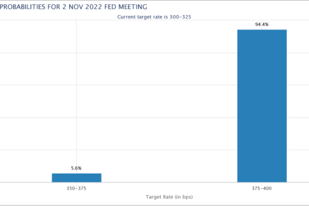 November’s FOMC meeting is still overwhelmingly expected to result in a 0.75% rate hike, matching September and July, according to CME Group’s FedWatch Tool.