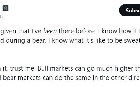 “A true bear market target, if we’re just getting started, would be ~$200-$400. That’s an 80% drawdown from here, 90% total drawdown — in line with past bear markets.”