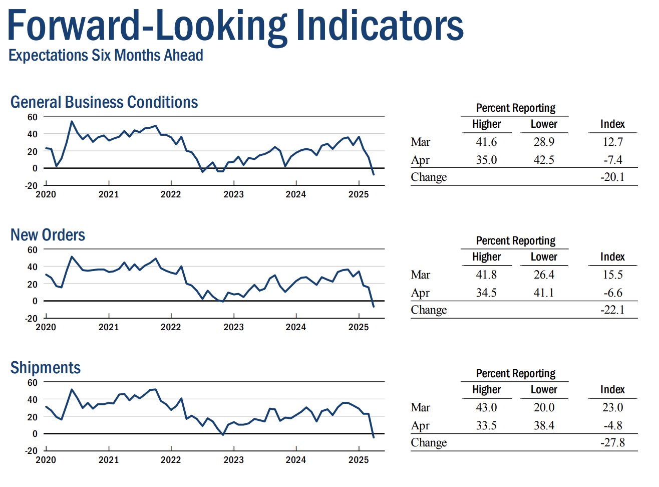 On April 17, the Philadelphia Federal Reserve Manufacturing Index — a monthly survey of 250 US-based manufacturers — reported the sharpest declines in overall business activity since 2020.