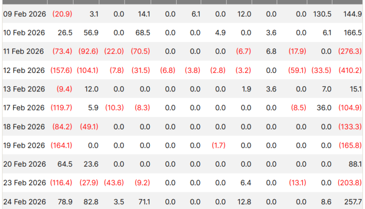 Corporate Ether treasuries also came under pressure. The leader in corporate Ether (ETH), Bitmine Immersion Technologies, was seen facing an $8.8 billion paper loss on its holdings amid the ongoing market downturn.