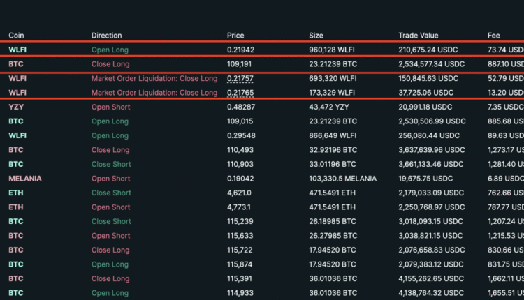 Andrew Tate’s long position on the Trump family-linked World Liberty Financial (WLFI) token was liquidated for a total loss of $67,500 earlier Tuesday on decentralized exchange Hyperliquid.