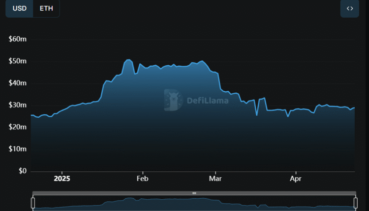 The Theo network secures nearly $29 million in total value locked as of April 23, according to industry data.