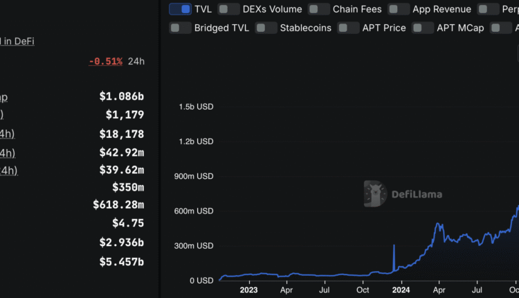 Aptos was founded in 2021 by a group of former Meta engineers. According to DefiLlama, the Aptos blockchain has a total value locked of $974 million as of April 18, with nearly a $320 million coming from lending protocol Aries Markets.