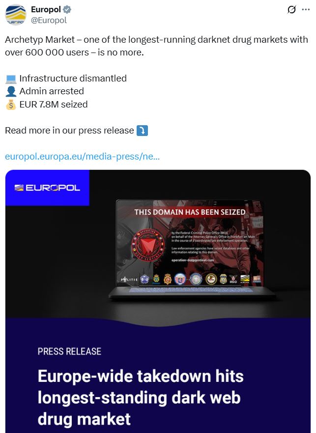 “The takedown of Archetyp Market is a clear signal that law enforcement agencies, supported by advanced blockchain intelligence, can disrupt even the most entrenched illicit platforms,” TRM Labs said