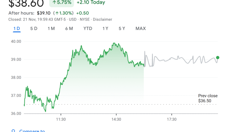 Bullish shares gain nearly 6% on Friday. Source: Google Finance