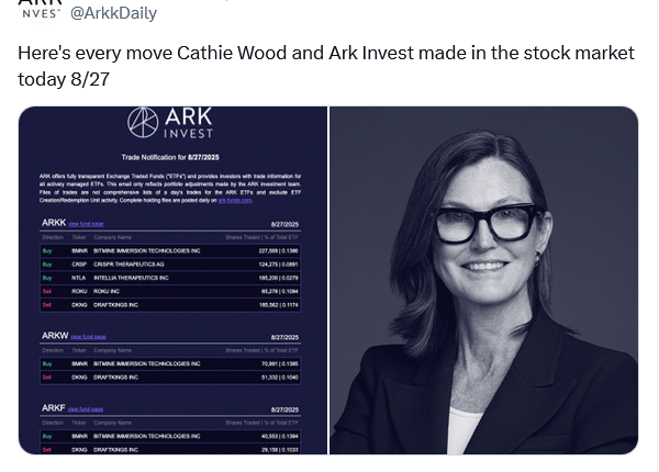 Cathie Wood’s ARK Invest bought another $15.6 million of shares in Bitmine Immersion Technologies (BMNR), bringing its total investment in the company to more than $300 million.