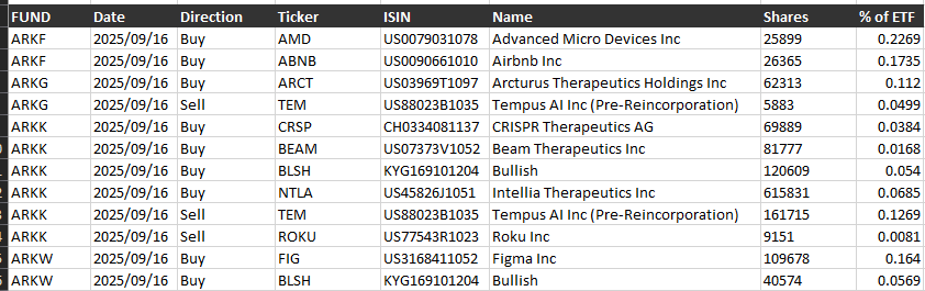 ARK Invest bought more than 160,000 shares in Bullish across ARKK and ARKW. Source: ARK Invest.