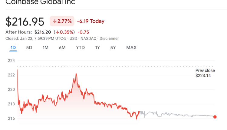 Coinbase shares dropped 2% on Friday. Source: Google Finance