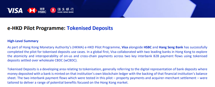 Visa completes e-HKD CBDC trial with HSBC and Hang Seng