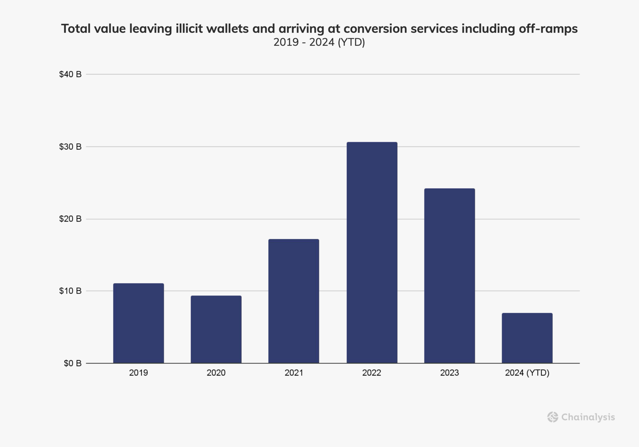 According to blockchain forensics specialist Chainalysis, more than $100 billion worth of crypto flowed from illicit wallets to conversion services between 2019 and mid-2024.