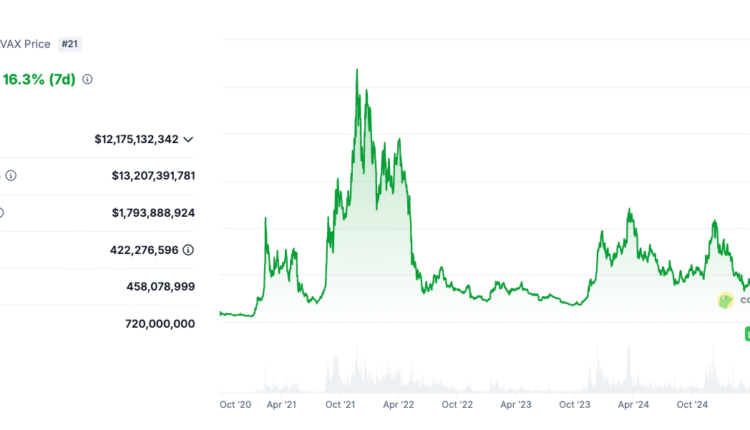 AVAX, the native cryptocurrency of the Avalanche blockchain, reached all-time highs above $134 soon after its launch, peaking at around $135 in November 2021, according to CoinGecko data. The cryptocurrency subsequently experienced a sharp sell-off in early 2022 and has not climbed above $65 since.