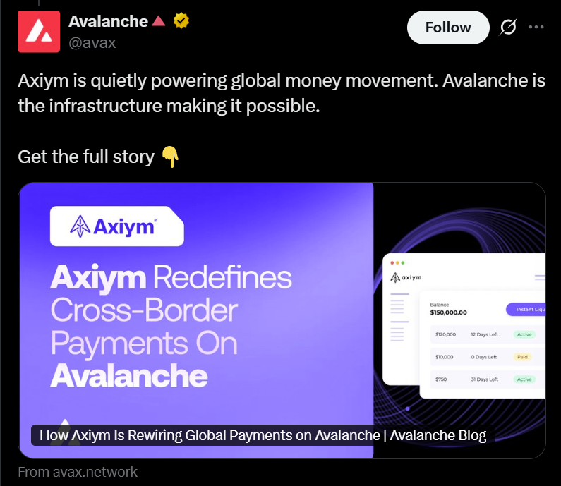 “Under the hood, Axiym has built an application that provides credit to global MSBs using stablecoins to power payments — these transactions occur on the Avalanche C-Chain,” Krupetsky said, adding: