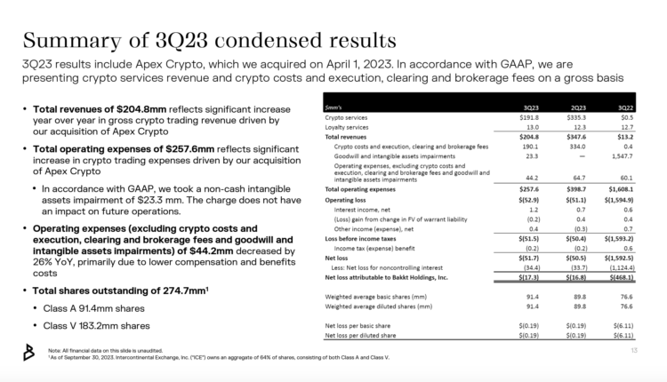 According to the report, Bakkt has seen its crypto revenue reach $191.8 million in the third quarter of 2023 thanks to the acquisition of Apex Crypto in April. Over the quarter, the company generated a total of $204.8 million in total revenue. In terms of assets under custody, Bakkt reported $505.7 million, a decrease of 28% over last year.