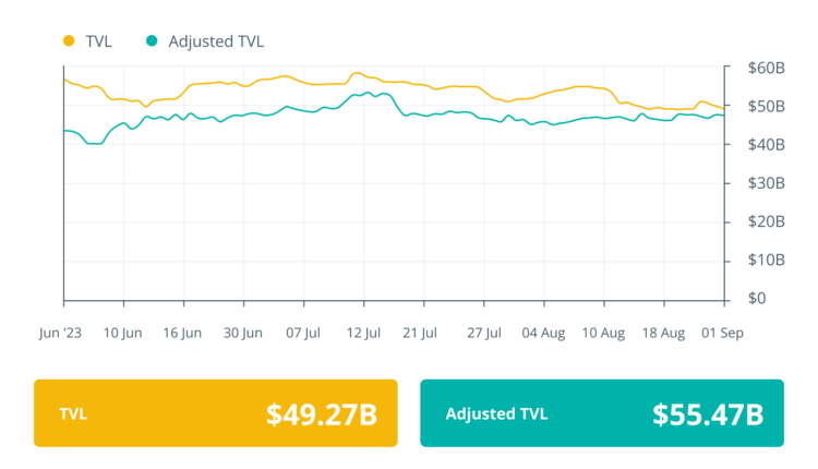 The DeFi market had another late-week bearish decline due to an overall market fall after news dropped of a delay in the decision on approval of a spot Bitcoin’s spot exchange-traded fund (ETF). Most DeFi tokens traded in the red, and the total value locked in DeFi tokens remained below $50 billion.