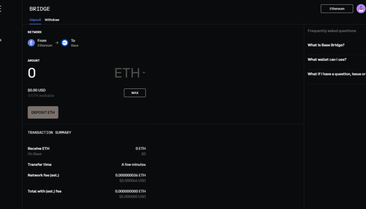 The user interface for Base network’s Ethereum bridge. Source: Base