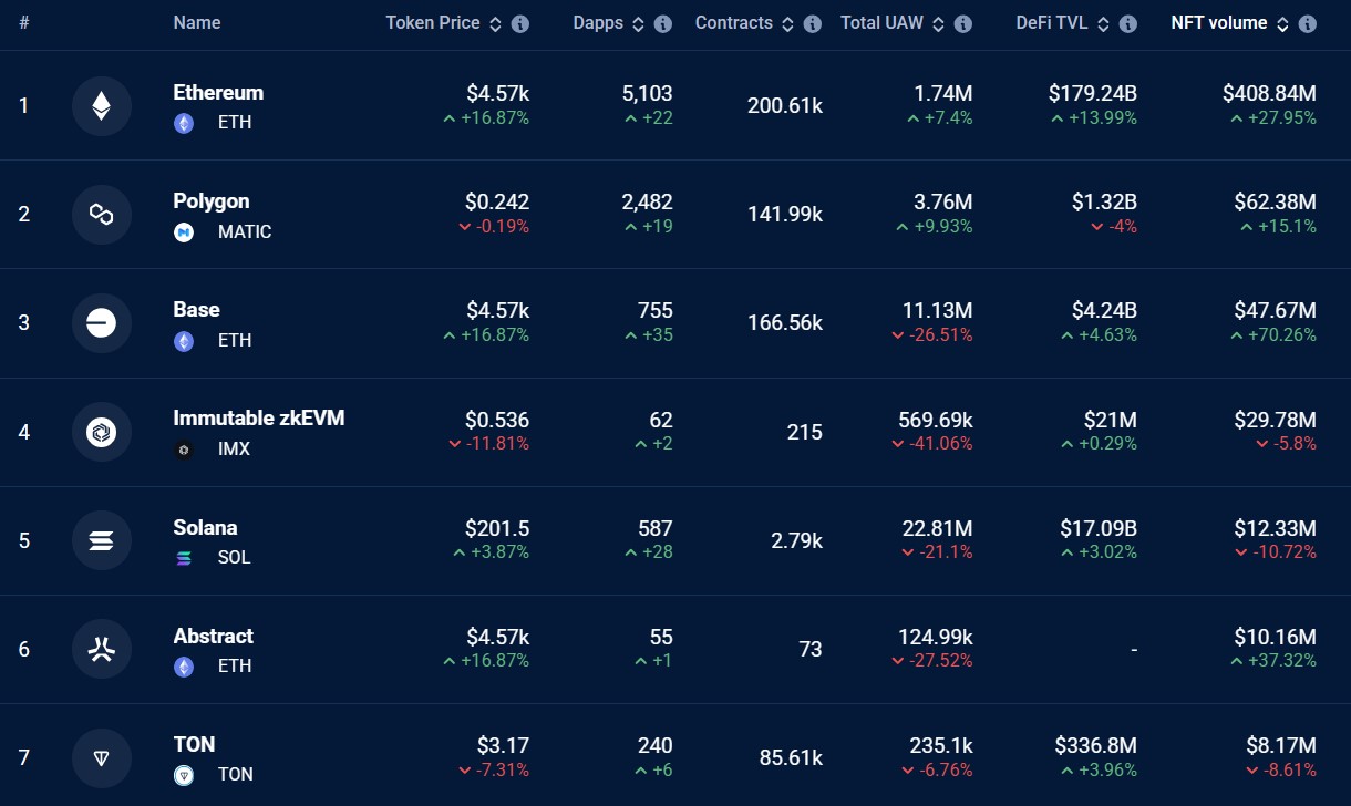 While Base may be on the rise, Ethereum remains the most dominant network for NFTs. DappRadar data showed that in the last 30 days, Ethereum recorded $408 million in trading volume.