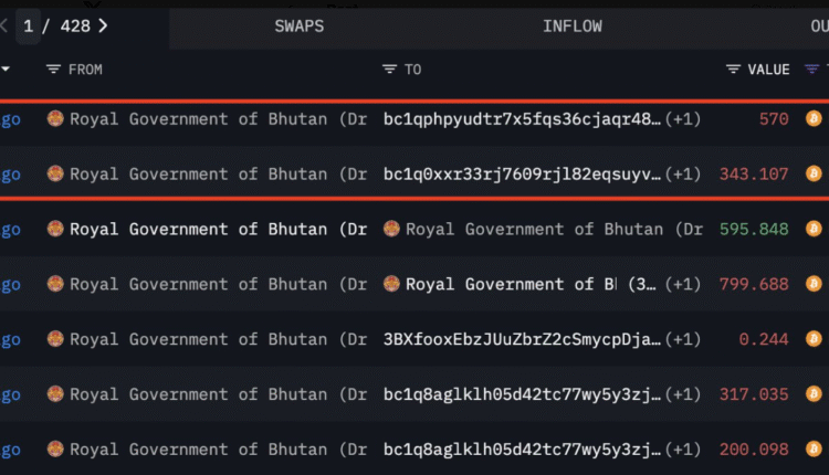 The Bhutan transfers came as other large holders moved coins ahead of potential volatility.
