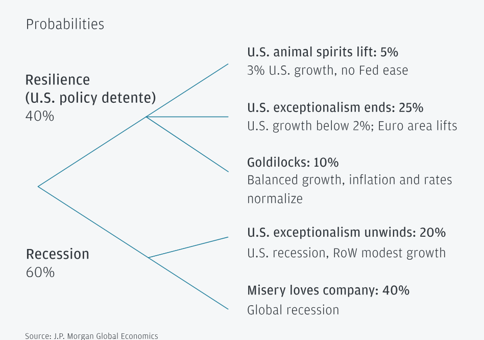 The probability of a US recession in 2025 has risen from 40% to 60%, according to an April 15 research report from JPMorgan, which wrote: