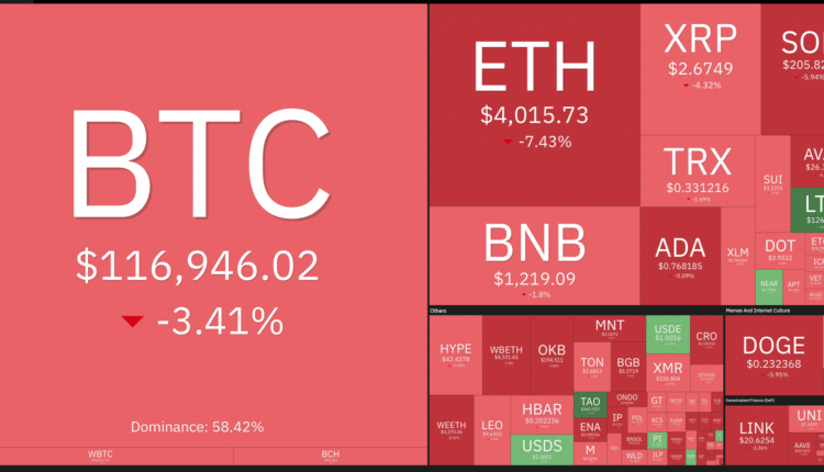 Bitcoin (BTC) attempted a recovery on Friday, but higher levels attracted selling. That has pulled the price under $116,000 as short-term traders are rushing to the exit.