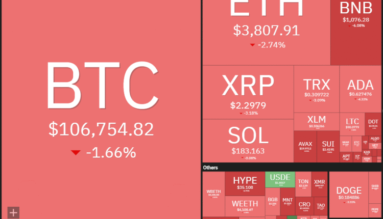 Bitcoin (BTC) remains under pressure as bears attempt to maintain the price below the strong $107,000 support level. The fall indicates a negative sentiment, with dip buyers staying away due to credit concerns in US regional banks.