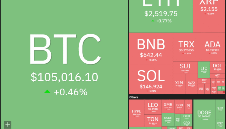 Bitcoin (BTC) is witnessing a tough battle between the bulls and the bears near the 50-day simple moving average ($104,269). The bulls are trying to form a higher low while the bears are attempting to sink the price to the psychological support at $100,000.