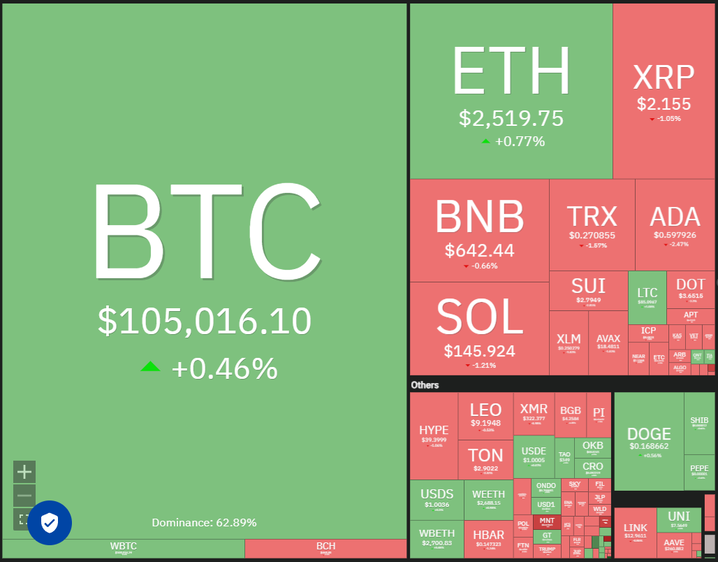 • Bitcoin has held above $104,000, but sustained selling could sink the price to $100,000.